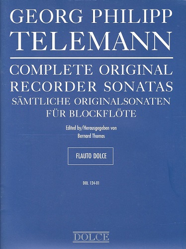 COMPLETE ORIGINAL RECORDER SONATAS by Georg Philipp Telemann edited by Bernard Thomas. Telemann's recorder sonatas are core repertoire for recorder players, deservedly so, because of the composer's admirable inventiveness and refusal to rely on formulas. Eight of them come from three printed collections engraved & published by Telemann himself, while the last sonata is from a manuscript in Brussels. For Alto Recorder, includes 67 page keyboard score, 32 page recorder part, 24 page basso continuo part Intermediate to advanced Photo |