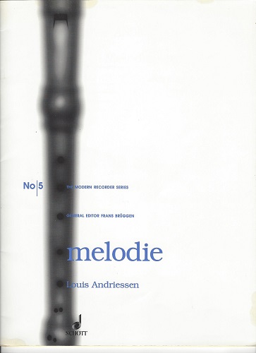 MELODIE, 1977 composed by 20th-century Dutch composer Louis Andriessen for the preeminent recorder player, Frans Bruggen. Andriessen studied with Luciano Berio and was influenced by John Cage and Stockhausen. Andriessen says this piece is to be played very quietly and focused. The two voices of this piece have to be in perfect balance as if one instrument, both should play legato. For ALTO RECORDER and Piano. No contemporary techniques required except glissando. Level Upper-Intermediate to Advanced Photo |
